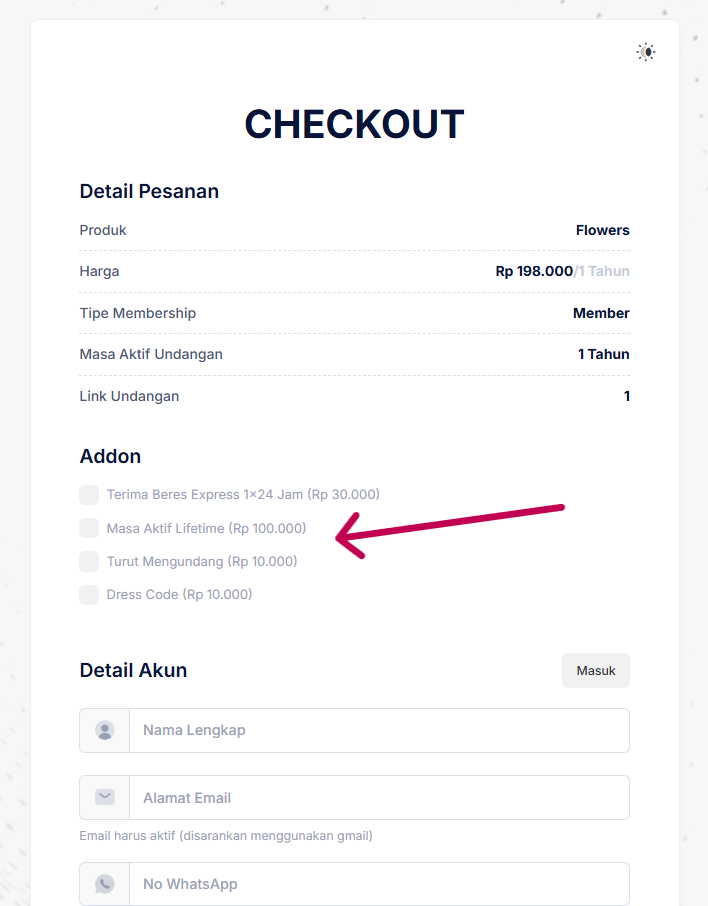 Setelah pembayaran terkonfirmasi, kamu akan menerima notifikasi bahwa akunmu siap digunakan untuk membuat undangan.